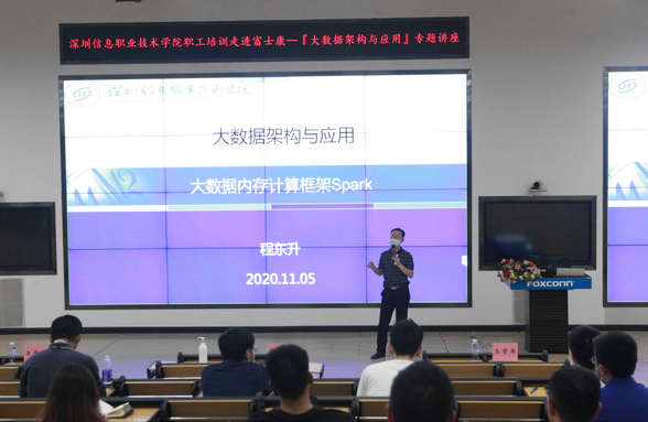 专业群珠江学者为富士康科技集团(深圳)开展“大数据架构和应用”系列讲座,向富士康学员深度解析了主流大数据平台与大数据计算框架,富士康深圳、郑州、成都、太原各地共300名学员参与了该培训,对提升富士康员工的专业知识与专业水平将起到重要推动作用。