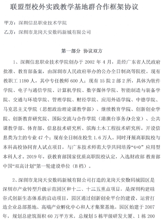 建成首批省协同育人平台“创新型软件人才协同育人基地”,构建“多元协同”的组织架构,将协同育人基地打造成国内有较大影响的软件产业人才培养基地、行业企业服务基地,创新创业孵化基地,支撑深圳区域软件产业的发展需求。建成央财支持的计算机应用与软件实训基地,立项2个省级大学生校外实践基地,市级校外实训基地3个;与国家信息中心共建国家级软件评测基地,与天安数码城等科技园区签约联盟型校外实训基地群5个,与世界500强、上市公司、国家高新技术单位等至少40家企业开展校企合作,吸引企业以捐赠设备、教学资源、资金、技术等合作方式参与基地建设,企业投入超过400万元,建设成果服务大湾区,帮助企业创造经济效益9381万元。