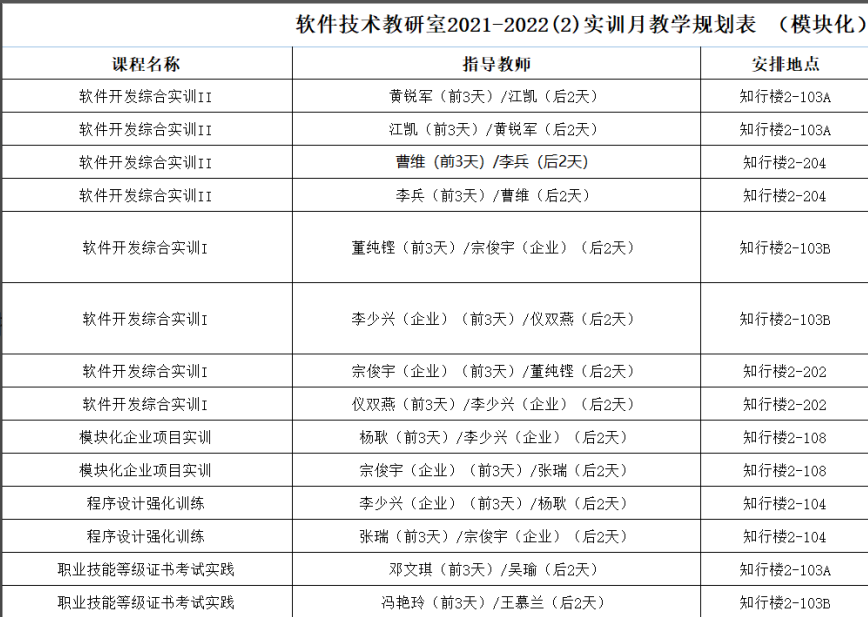 专业群全面实施工单式模块化教学,示范引领职业教育课程改革。基于能力分析矩阵,专兼职教师团队将生产项目转换为多个教学场景、设计工单内容,在课堂教学和实训教学中实施以教学模块为单位的协同讲授、共同评价。2021春季学期,专业群启动模块化教学,在部分课程进行实践;2021年秋季学期,专业群启动工单式实训,在部分实训课进行实践;2022春季学期,专业群全面开展工单式模块化实训教学;2022秋季学期,专业群将全面实施工单式模块化教学。